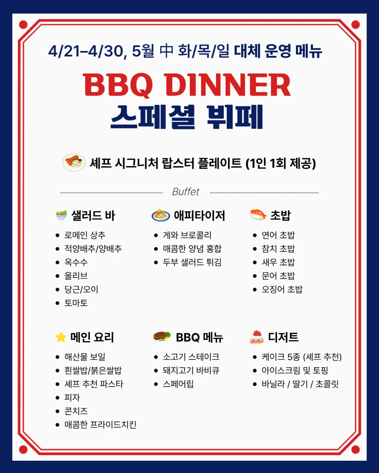✔ BBQ 디너 스페셜 뷔페 (공연 없음)